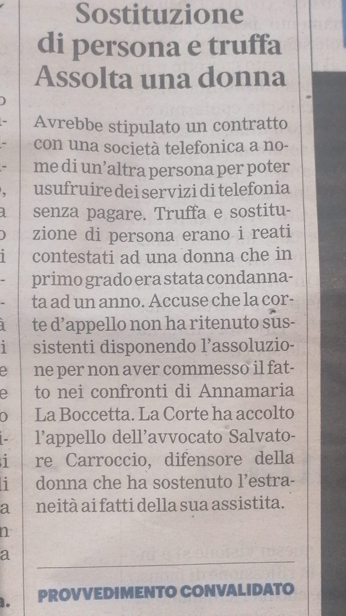 Gazzetta del Sud Sostituzione di persona e truffa. Assolta una donna 06 - 02 - 2026 |